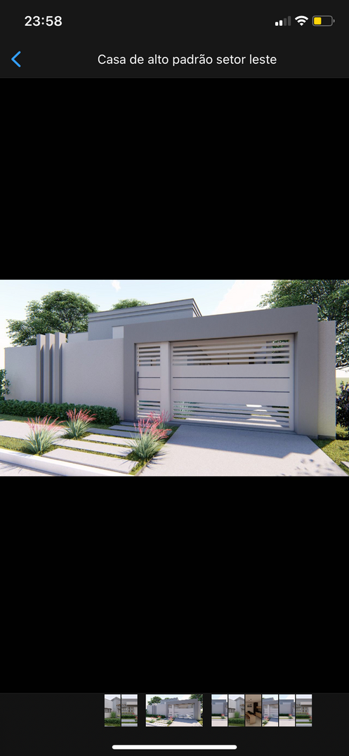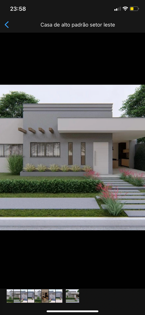 Design moderno, 3 quartos; sendo 1 suíte, área gourmet, jardim e garagem para os carros.
