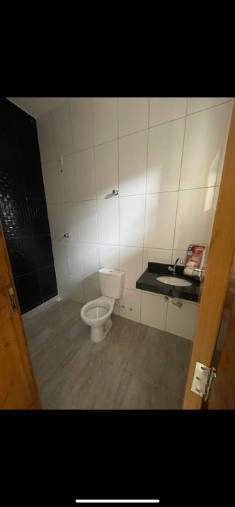 1 quarto com suíte, cozinha americana, casa com laje e varanda com churrasqueira.