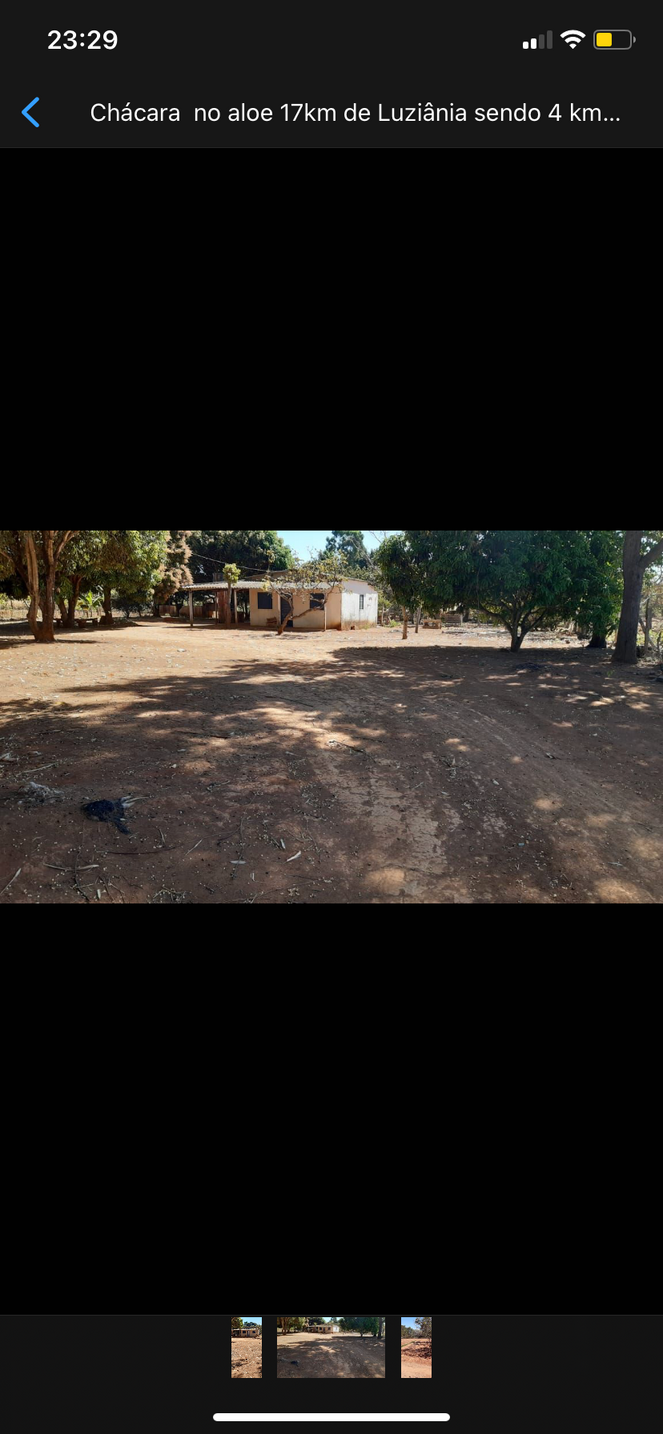 2 hectares,tanque de peixe, córrego, casa de 3 quartos, a 16 km de Luziânia.
