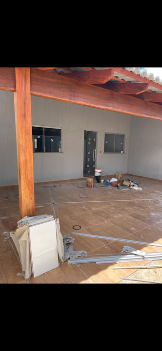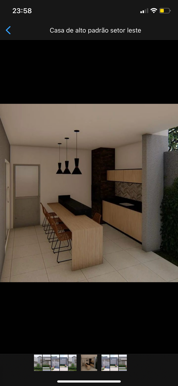 3 quartos; sendo 1 suíte, cozinha com balcão americano e pergolado.